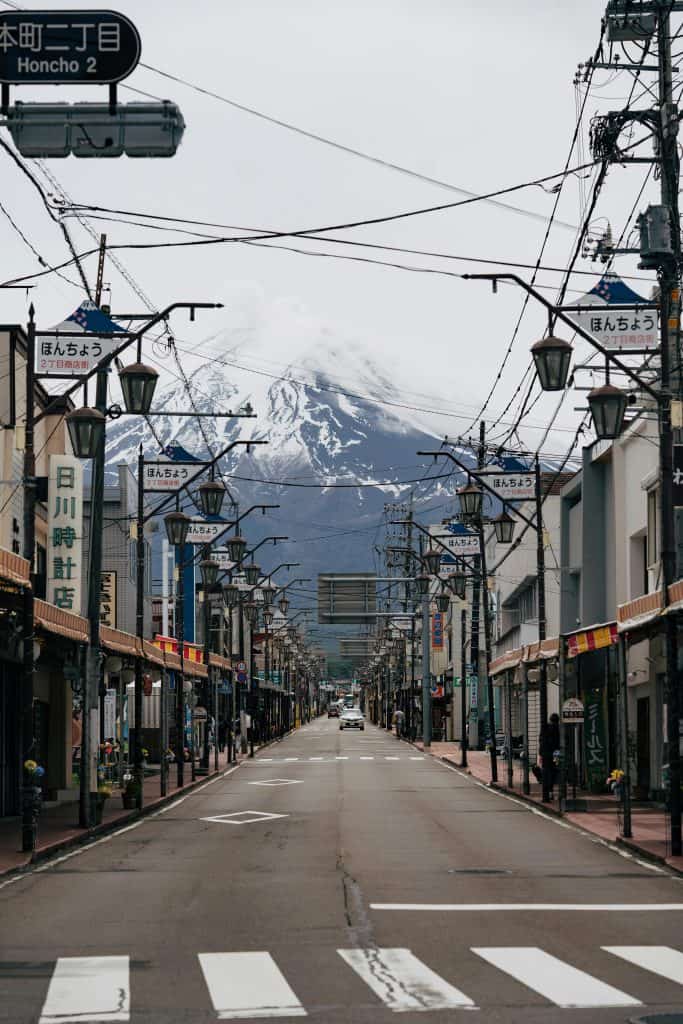 A foto típica é na rua Honcho, com vista para a montanha.
